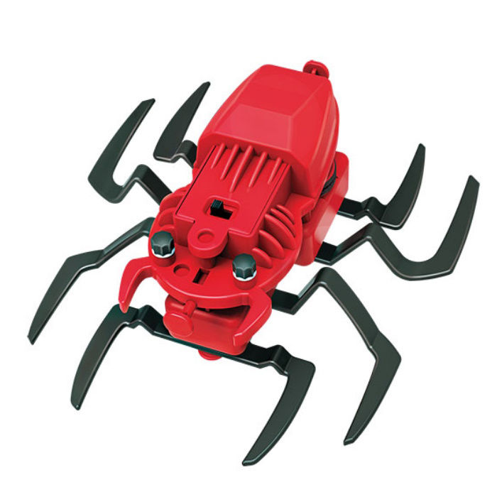 ο οποίος με τη σειρά του γυρίζει και τον άλλο τροχό. Το σκοινί που βρίσκεται μεταξύ των τροχών τους κάνει να γυρίζουν. Με αυτόν τον τρόπο το Ρομπότ Αράχνη ανεβαίνει στο σκοινί. Υπάρχει ένας διακόπτης δύο διαδρομών στο σώμα της μπαταρίας, που λειτουργεί από τα κουμπώματα στις άκρες του σώματος. Ο διακόπτης αντιστρέφει την κατεύθυνση του ηλεκτρικού ρεύματος του κινητήρα, κάνοντας τον να αλλάξει κατεύθυνση. Όταν το Ρομπότ Αράχνη χτυπήσει το στοπ ή το βαρίδι, ο διακόπτης ενεργοποιείται, με αποτέλεσμα το Ρομπότ Αράχνη να αλλάζει κατεύθυνση.