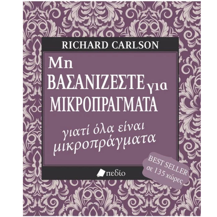 Μήπως η ζωή σας είναι γεµάτη στρες; Φυσικά και είναι. «Χωρίς αµφιβολία, πολλοί από εµάς έχουµε κατακτήσει τη νευρωτική τέχνη τού να περνούµε το µεγαλύτερο µέρος της ζωής µας ανησυχώντας για τα πάντα». Είναι όµως δυνατόν να µην αφήσουµε τα µικροπράγµατα να µας τρελάνουν; Σε αυτό το διορατικό και γεµάτο χιούµορ βιβλίο, ο δηµοφιλής συγγραφέας Richard Carlson µας δείχνει τους τρόπους για να ξεχωρίσουµε τα σηµαντικά από τα ασήµαντα. Οι εκατό στρατηγικές που µας προτείνει (όπως «Mάθετε να ζείτε το παρόν», «Eπιλέξτε σοφά τις µάχες που δίνετε», «Aντί να έχετε δίκιο, επιλέξτε να έχετε καλοσύνη», «Aντισταθείτε στην επιθυµία σας για κριτική», «Σκεφτείτε αυτά που έχετε και όχι αυτά που δεν έχετε», «Aλλάξτε τη σχέση σας µε τα προβλήµατα», «Zήστε τη σηµερινή µέρα σαν να είναι η τελευταία. Mπορεί και να είναι»), όλες δοκιµασµένες και αποτελεσµατικές, µας βοηθούν να αντιµετωπίσουµε προβλήµατα που µας φαίνονταν «άλυτα», να µην εκτροχιαζόµαστε απέναντι στις «δύσκολες προκλήσεις» και να καλλιεργήσουµε έναν πιο ήρεµο και αρµονικό τρόπο ζωής.