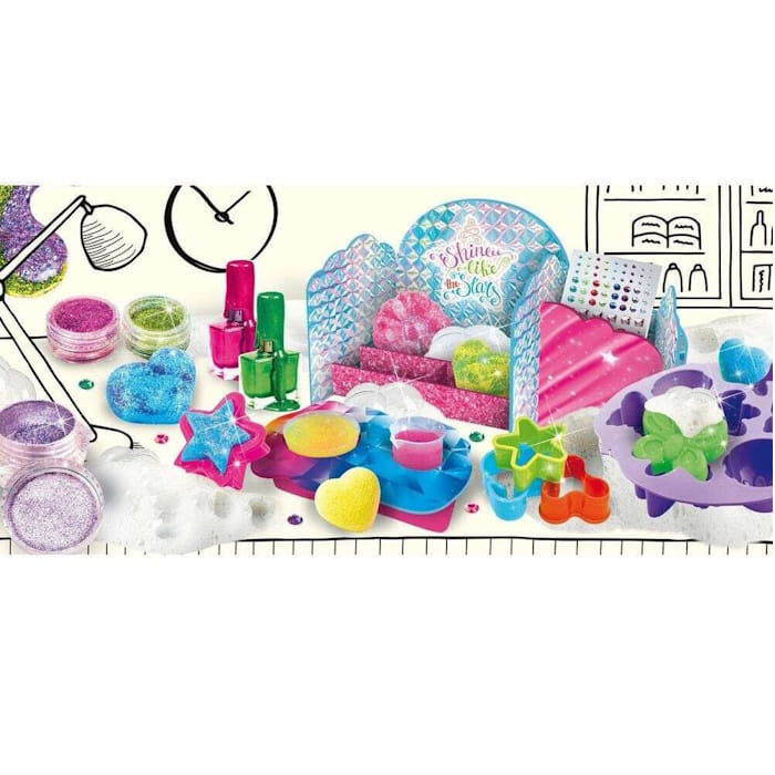 Εκπαιδευτικό παιχνίδι STEM που συνδυάζει δημιουργία και πειραματισμό για κατασκευή σαπουνιών, βερνικιών και λαμπερών εφέ με γκλίτερ σε ασφαλές περιβάλλον.