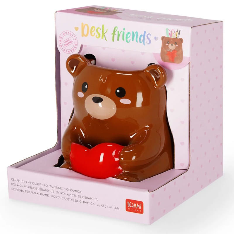 Η κεραμική μολυβοθήκη Legami με τη μορφή του Teddy Bear αποτελεί την πιο γλυκιά λύση οργάνωσης για τον χώρο μελέτης ή εργασίας. Το χαριτωμένο καφέ αρκουδάκι που κρατάει σφιχτά μια κόκκινη καρδιά στην αγκαλιά του λειτουργεί ως ένας "φίλος" γραφείου, προσθέτοντας μια νότα τρυφερότητας και αισιοδοξίας στην καθημερινότητά σας.