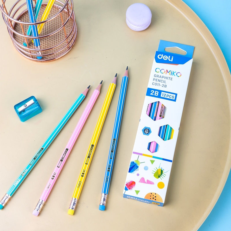Το μολύβι με γόμα Comico της Deli είναι ιδανικό για γραφή, αλλά και γραμμικό σχέδιο. Ο υψηλής ποιότητας γραφίτης του με σκληρότητα HB εξασφαλίζει ομαλή γραφή χωρίς πίεση και έντονες μαύρες γραμμές. Είναι ανθεκτικό και ξύνεται εύκολα με οποιαδήποτε ξύστρα χωρίς να σπάει. Το εξάγωνο εργονομικό σχήμα του βοηθά στο σωστό πιάσιμο και προσφέρει άνετο και αβίαστο γράψιμο.