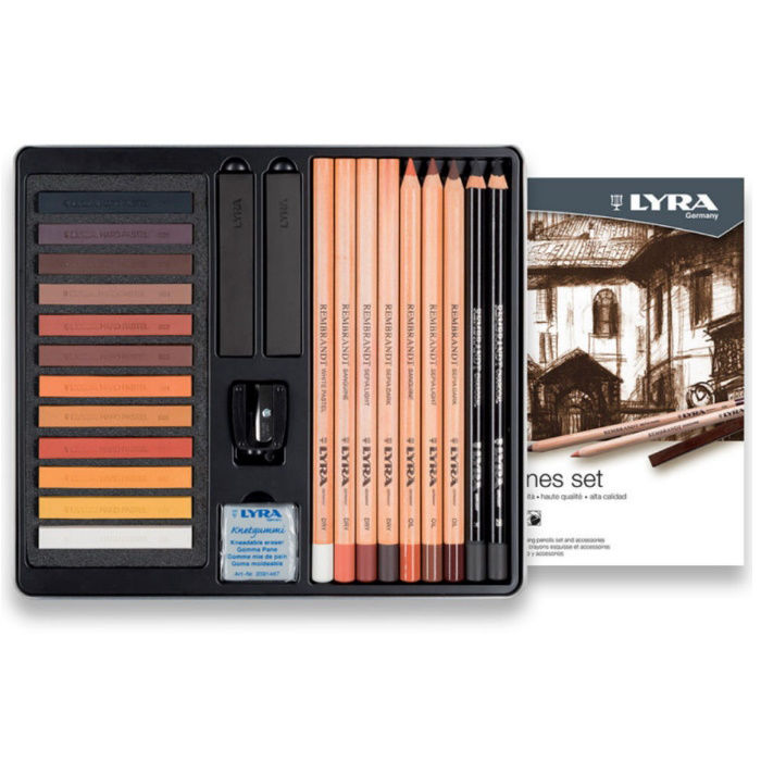 Ανακαλύψτε το Brown tones set LYRA Αυτό το σετ περιλαμβάνει μολύβια γραφίτη, παστέλ και αξεσουάρ σε καφέ αποχρώσεις. Όλα όσα χρειάζεστε για να δημιουργήσετε υπέροχα σχέδια στους τομείς των γραφικών, του σχεδιασμού, των καλών τεχνών και της αρχιτεκτονικής.