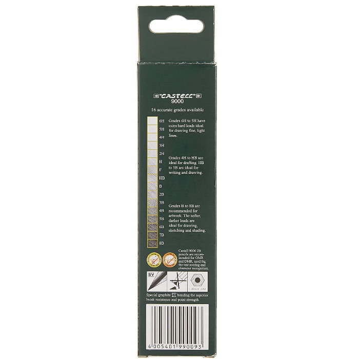 Faber castell 9000 ένα αυθεντικά κλασικό μολύβι - λανσαρίστηκε από τον Κόμη Alexander von Faber-Castell το 1905. Η ποιότητά του και οι προσεκτικά διαβαθμισμένοι βαθμοί σκληρότητας το φέρνουν στην κορυφή των προτιμήσεων καλλιτεχνών και εικονογράφων. Η μύτη του είναι πλήρως συγκολλημένη στο εσωτερικό του ξύλου, γεγονός που το καθιστά ιδιαίτερα ανθεκτικό στο σπάσιμο. Το Castell 9000 διατίθεται σε 16 διαφορετικούς βαθμούς σκληρότητας, καθιστώντας το ιδανικό για κάθε τεχνική και καλλιτεχνική εφαρμογή.