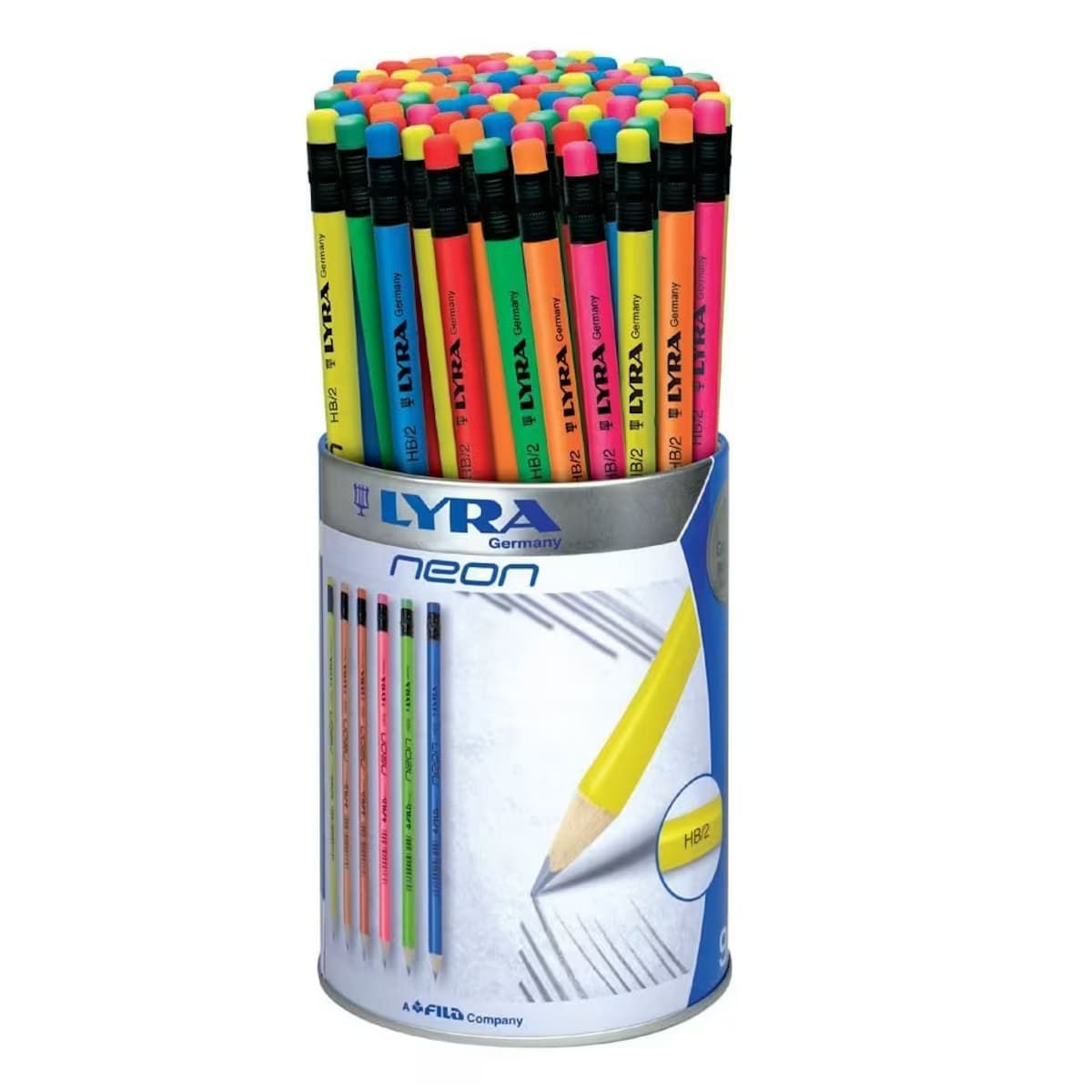 Το Lyra Neon HB με γόμα είναι ένα ποιοτικό ξύλινο μολύβι με εξάγωνο σχήμα και εντυπωσιακό φωσφοριζέ χρώμα που ξεχωρίζει σε κάθε κασετίνα. Διαθέτει μαλακή και ανθεκτική μύτη σκληρότητας HB, κατάλληλη για γραφή, σκίτσο και σημειώσεις. Η ενσωματωμένη γόμα στην άκρη το καθιστά πρακτικό για σχολική, φοιτητική και επαγγελματική χρήση.