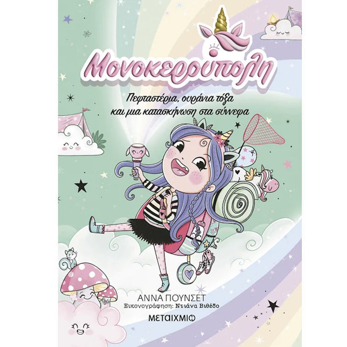 Στο πέμπτο βιβλίο της σειράς η Ana Punset μας ταξιδεύει στη Μονοκερούπολη που αυτή τη φορά αποκαλύπτει το πιο ονειρεμένο της πρόσωπο. Η κατασκήνωση βρίσκεται ψηλά στα σύννεφα και οι σκηνές αιωρούνται πάνω από τον ουρανό σαν αφράτο βαμβάκι. Τα ουράνια τόξα είναι τόσο κοντά ώστε μπορείς να τα αγγίξεις με το δάχτυλο και κάθε γωνιά φωτίζεται από πεφταστέρια.