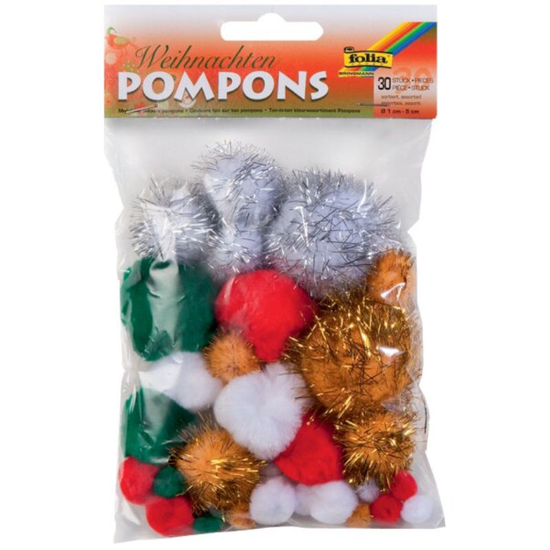 Η συσκευασία περιέχει 30 κομμάτια με διάμετρο 1-5 cm σε διάφορα χριστουγεννιάτικα χρώματα.