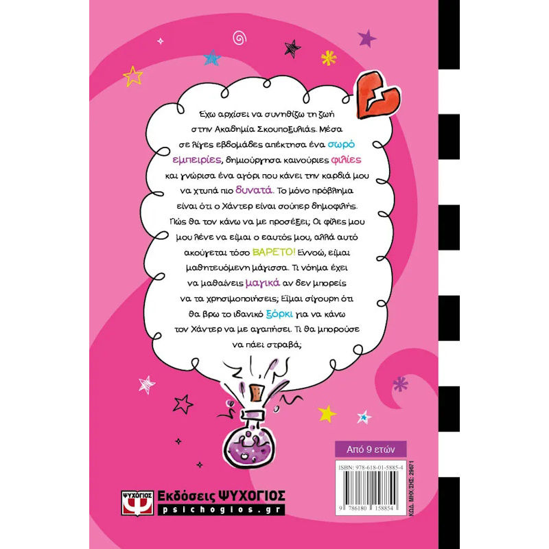 Έχω αρχίσει να συνηθίζω τη ζωή στην Ακαδημία Σκουποξυλιάς. Μέσα σε λίγες εβδομάδες απέκτησα ένα σωρό εμπειρίες, δημιούργησα καινούριες φιλίες και γνώρισα ένα αγόρι που κάνει την καρδιά μου να χτυπά πιο δυνατά. Το μόνο πρόβλημα είναι ότι ο Χάντερ είναι σούπερ δημοφιλής. Πώς θα τον κάνω να με προσέξει; Οι φίλες μου μου λένε να είμαι ο εαυτός μου, αλλά αυτό ακούγεται τόσο ΒΑΡΕΤΟ! Εννοώ, είμαι μαθητευόμενη μάγισσα. Τι νόημα έχει να μαθαίνεις μαγικά αν δεν μπορείς να τα χρησιμοποιήσεις; Είμαι σίγουρη ότι θα βρω το ιδανικό ξόρκι για να κάνω τον Χάντερ να με αγαπήσει. Τι θα μπορούσε να πάει στραβά;