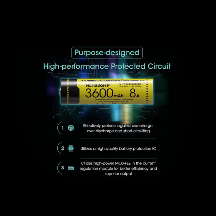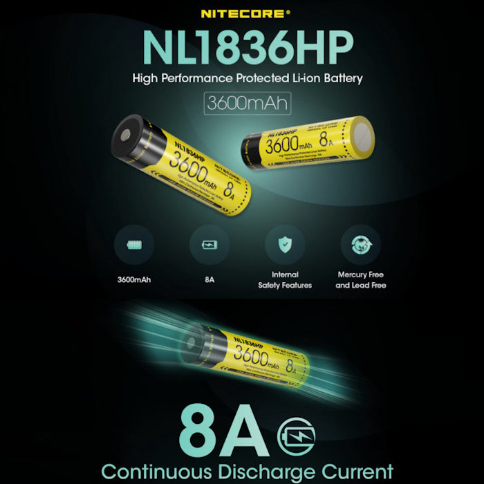 Υψηλής απόδοσης επαναφορτιζόμενη μπαταρία Ιόντων Λιθίου (Li-ion) , μεγέθους 18650, χωρητικότητας 3600mAh