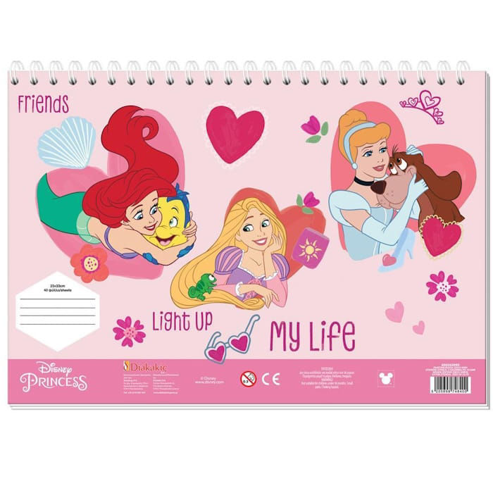 Το μπλοκ ζωγραφικής Diakakis με θέμα τους αγαπημένους χαρακτήρες Princess προσφέρει ένα ολοκληρωμένο πακέτο δημιουργικής απασχόλησης για κάθε παιδί, το μπλοκ περιλαμβάνει 40 φύλλα υψηλής ποιότητας, πολύχρωμα αυτοκόλλητα και ειδικά στένσιλ με διάφορα σχήματα και σχέδια που εμπλουτίζουν τη ζωγραφική εμπειρία