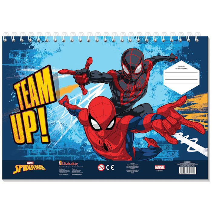 Το μπλοκ ζωγραφικής Diakakis με θέμα τους αγαπημένους χαρακτήρες Spiderman προσφέρει ένα ολοκληρωμένο πακέτο δημιουργικής απασχόλησης για κάθε παιδί, το μπλοκ περιλαμβάνει 40 φύλλα υψηλής ποιότητας, πολύχρωμα αυτοκόλλητα και ειδικά στένσιλ με διάφορα σχήματα και σχέδια που εμπλουτίζουν τη ζωγραφική εμπειρία