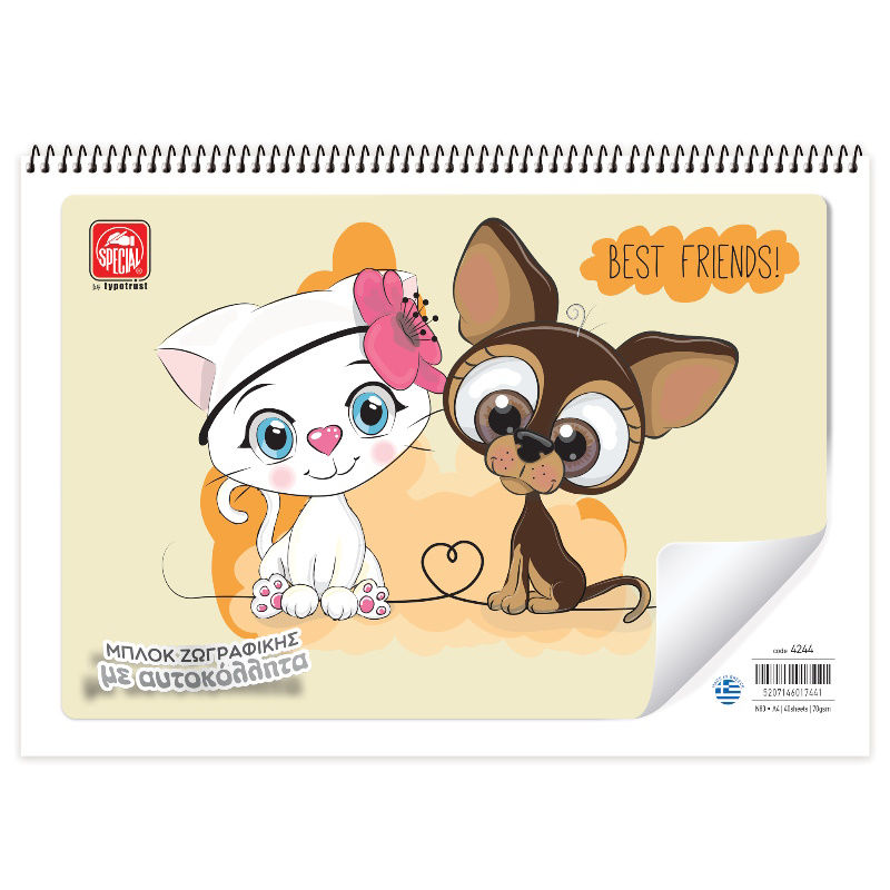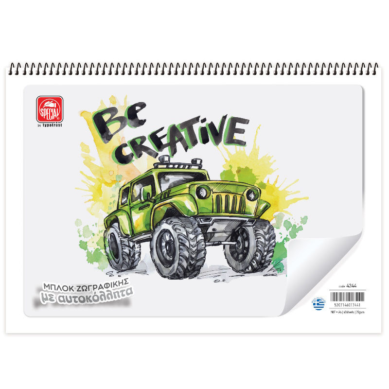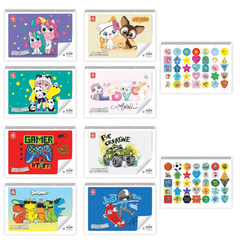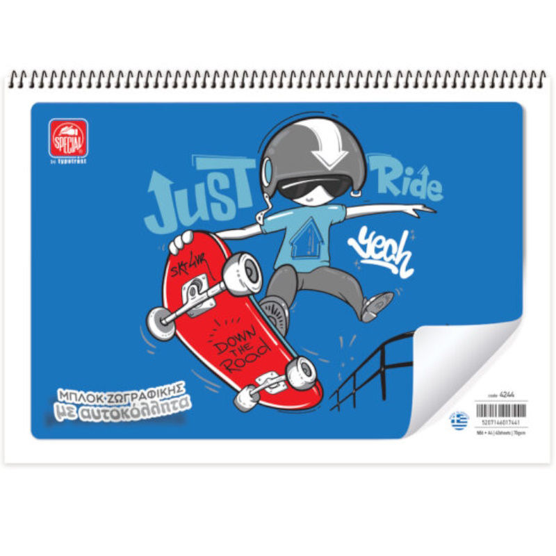 Μπλοκ ζωγραφικής με χαρούμενα ξεχωριστά εξώφυλλα σχεδιασμένα για τους δημιουργούς της καρδιάς μας! Το κάθε μπλοκ έχει 40 φύλλα και είναι από εξαιρετικής ποιότητας χαρτί 70γρ. κατάλληλο για τις ζωγραφιές των μικρών μας φίλων! Έχει μονό μεταλλικό σπιράλ. Εσωτερικά έχει μία σελίδα αυτοκόλλητα σε διάφορα σχέδια και σχήματα. Είναι το ιδανικό μπλοκ για μολύβι, ξυλομπογιά, παστέλ και μαρκαδόρους! Ήρθε η ώρα να αφησουμε την φαντασία μας ελεύθερη και να ξεδιπλώσουμε το ταλέντο μας στην ζωγραφική!