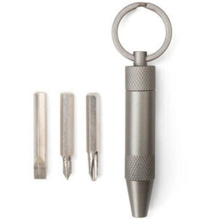 Μικρό μπρελόκ εργαλείο για να έχεις πάντα κατσαβίδι στα κλειδιά σουΤο μπρελόκ κατσαβίδι Kikkerland Screw It Mini Keyring Screwdriver KR104 612615127173 είναι ένα έξυπνο μικρό εργαλείο που κουμπώνει στον κρίκο των κλειδιών σου και σε βγάζει ασπροπρόσωπο σε κάθε μικροεπισκευή. Περιλαμβάνει τρεις μύτες κατσαβιδιού για γυαλιά, μικρές ηλεκτρονικές συσκευές και βιδάκια σε έπιπλα ή αξεσουάρ ώστε να έχεις πάντα τη σωστή λύση χωρίς να ψάχνεις ολόκληρη εργαλειοθήκη. Η διακριτική του εμφάνιση ταιριάζει με κλειδιά σπιτιού και γραφείου και γίνεται γρήγορα ένα από τα πιο χρήσιμα αντικείμενα που κουβαλάς καθημερινάΗ Kikkerland έχει σχεδιάσει το Screw It Mini Keyring Screwdriver με σώμα από ανθεκτικό κράμα αλουμινίου και μεταλλικά στοιχεία από CRV και σίδερο ώστε να αντέχει σε συχνή χρήση χωρίς να σκουριάζει. Στο εσωτερικό κρύβονται μαγνητικά οι μύτες του κατσαβιδιού για να μην χάνονται ενώ το συνολικό μέγεθος περίπου 2.5 x 9 x 1.5 cm το κάνει ελαφρύ και εύκολο στη μεταφορά στην τσέπη ή στην τσάντα. Το αποτέλεσμα είναι ένα ποιοτικό μίνι εργαλείο που παρόλο που είναι μικρό λειτουργεί σαν κανονικό κατσαβίδι για λεπτές δουλειές.