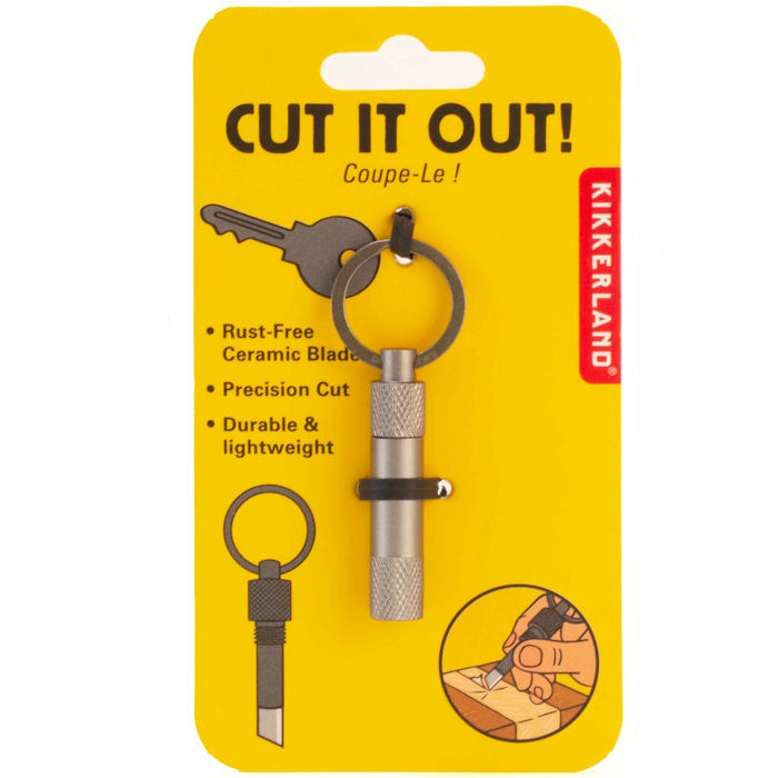Η Kikkerland έχει σχεδιάσει το Mini Keyring Knife Cut It Out με σώμα από αλουμινένιο κράμα και μεταλλικό κρίκο ώστε να είναι ταυτόχρονα ελαφρύ και ανθεκτικό. Η κεραμική λάμα κρύβεται με ασφάλεια μέσα στη θήκη όταν δεν χρησιμοποιείται ενώ το συνολικό μέγεθος περίπου 2.5 x 1 x 7 cm το κάνει ιδανικό για να κρεμιέται σε μπρελόκ κλειδιών ή σε φερμουάρ τσάντας. Τα υλικά του αντέχουν στη συχνή χρήση και εξασφαλίζουν σταθερή απόδοση για μεγάλο χρονικό διάστημα.
