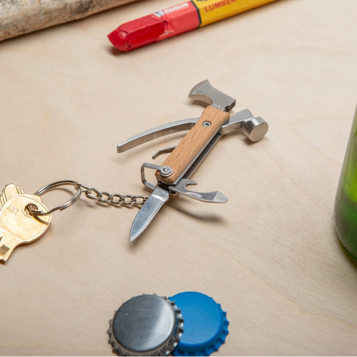 Η Kikkerland έχει εξοπλίσει το Wooden Mini Axe Tool με 6 διαφορετικά εργαλεία ώστε να είσαι έτοιμος για κάθε μικρή δουλειά της ημέρας mini axe, μικρή σφύρα, ανοιχτήρι μπουκαλιών, κατσαβίδι με ίσια μύτη, πένσα και μαχαιράκι. Η κατασκευή από ανοξείδωτο ατσάλι 420 σε συνδυασμό με ξύλινη λαβή από οξιά και μεταλλικά στοιχεία προσφέρει αντοχή, σταθερό κράτημα και μια όμορφη φυσική αίσθηση στο χέρι. Με διαστάσεις περίπου 3.8 x 8.3 x 1.3 cm παραμένει ελαφρύ και εύχρηστο χωρίς να πιάνει χώρο.
