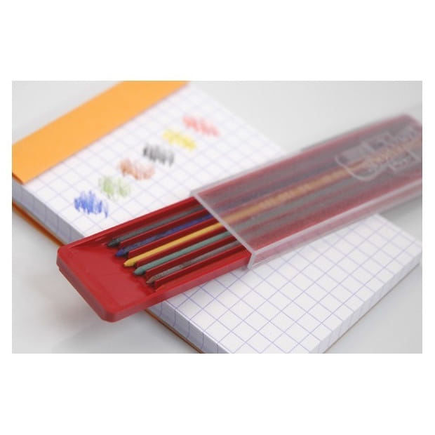 Η ποικιλία των έξι χρωμάτων (Κίτρινο, Κόκκινο, Μπλε, Πράσινο, Καφέ, Μαύρο) καθιστά το σετ απαραίτητο για αρχιτέκτονες, μηχανικούς και καλλιτέχνες που απαιτούν χρωματική κωδικοποίηση στα σχέδιά τους. Η ανθεκτική πλαστική συσκευασία προστατεύει τις μύτες από σπασίματα κατά τη μεταφορά και επιτρέπει την εύκολη επιλογή του επιθυμητού χρώματος. Μπορούν να ξυστούν με την ειδική ξύστρα που διαθέτουν τα περισσότερα μηχανικά μολύβια 2mm για τη δημιουργία εξαιρετικά λεπτών γραμμών.