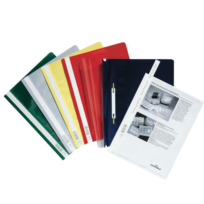 Ντοσιέ έλασμα Durable ιδανικό για έγγραφα Α4 . Με διάφανο μπροστινό κάλυμμα και λωρίδα ετικέτας σε όλο το ύψος.
