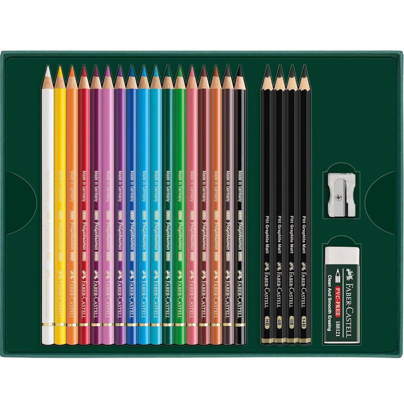 Χρωματιστά μολύβια Polychromos και μολύβια Pitt Graphite Matt από την Faber-Castell σε ένα ελκυστικό σετ δώρου 23τεμαχίων.