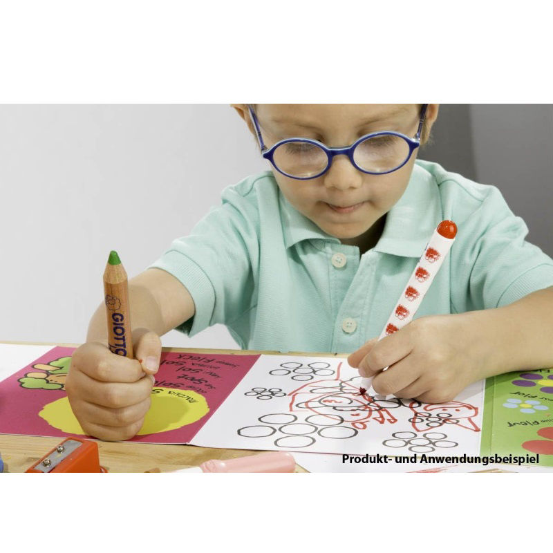 Σούπερ μεγάλα μολύβια Giotto be-be για τα πολύ μικρά παιδιά. Κατασκευασμένο από το καλύτερο ξύλο. Φωτεινό σε απαλά χρώματα. Εύκολο να εφαρμοστεί στο χαρτί χωρίς να ασκείται πάρα πολλή πίεση. Ασφαλές, superwashable εύκολο στο ξύσιμο. Extra-πλατιά 7 χιλιοστά διάμετρο μολυβιού. Καπάκι ασφάλειας, ειδικά σχεδιασμένο για παιδιά κάτω των τριών ετών που έχουν ήδη κάνει την πρώτη επαφή τους με την τέχνη. Εγγυημένη ασφάλεια λόγω της προσεκτικής επιλογής των συστατικών του προϊόντος και σχολαστικός έλεγχος ποιότητας που διενεργούνται σε κάθε στάδιο της παραγωγικής διαδικασίας. Η ξύστρα συμπεριλαμβάνεται.