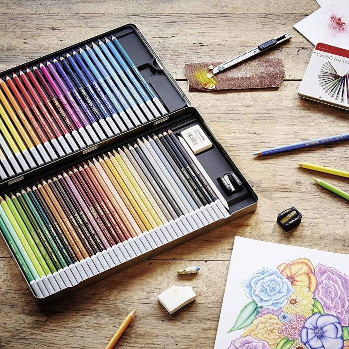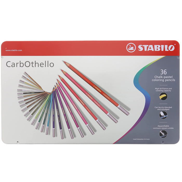Τα χρωματιστά μολύβια ζωγραφικής STABILO CarbOthello είναι ιδιαίτερα αγαπητά από επαγγελματίες & ερασιτέχνες ζωγράφους λόγω της εξαιρετικής τους ποιότητας και του έντονου χρωματικού αποτελέσματος που αφήνουν πάνω στο χαρτί. Ιδανικά για χρήση στη γραφιστική καθώς και στο ελεύθερο σχέδιο - τα CarbOthello έχουν πολύ απαλή εφαρμογή και εξαιρετική ένταση χρώματος. Διαθέσιμα σε 60 βασικές αποχρώσεις- μπορούν να αναμειχθούν εύκολα με άλλα χρώματα και να προκύψουν πολλές περισσότερες. Η μύτη, πλήρως επικολλημένη κατά μήκος του ξύλινου σώματος, είναι ιδιαίτερα ανθεκτική στο σπάσιμο.