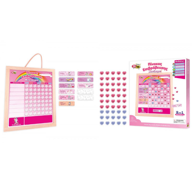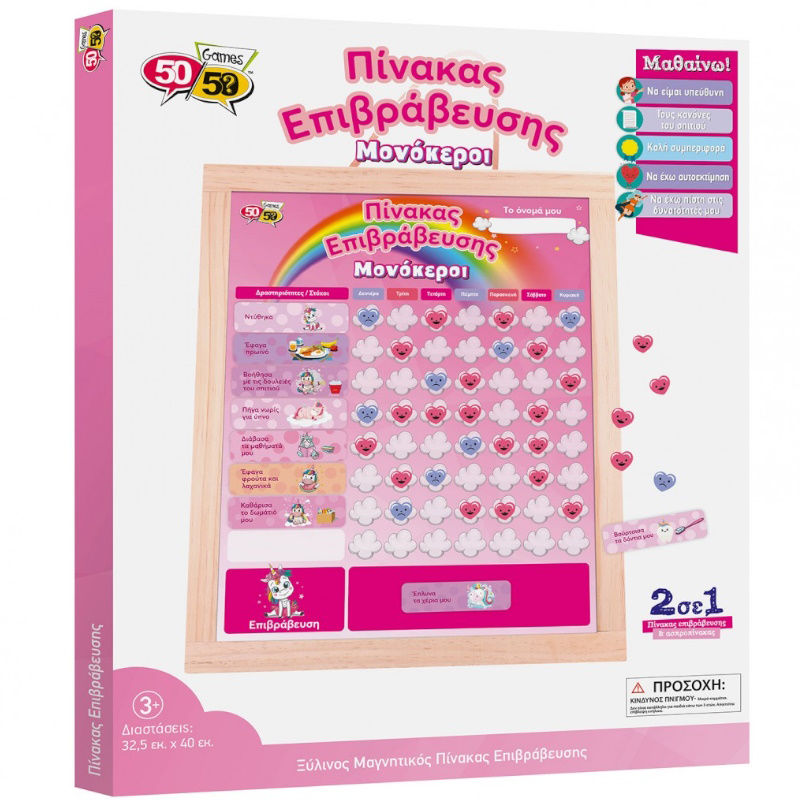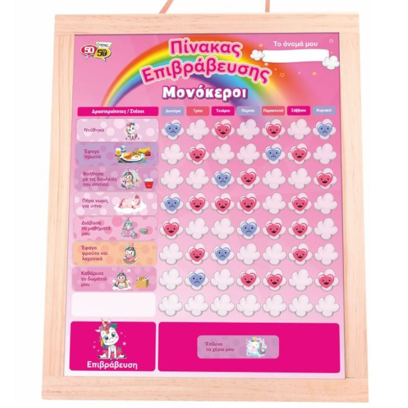 Ξύλινος μαγνητικός πίνακας επιβράβευσης & ασπροπίνακας μονόκεροι 50/50 Games 505109