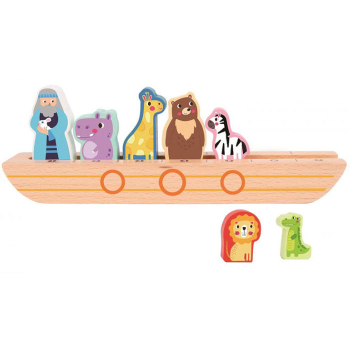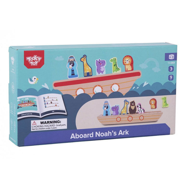 Το σετ αποτελείται από την Κιβωτό, μία καμηλοπάρδαλη, έναν ιπποπόταμο, μία αρκούδα, μία ζέβρα, ένα λιοντάρι, έναν κροκόδειλο και τον Νώε. Το ξύλινο παιχνίδι συμπεριλαμβάνει επίσης ένα εικονογραφημένο βιβλιαράκι με 60 διαφορετικούς γρίφους και 4 διαφορετικά επίπεδα δυσκολίας.