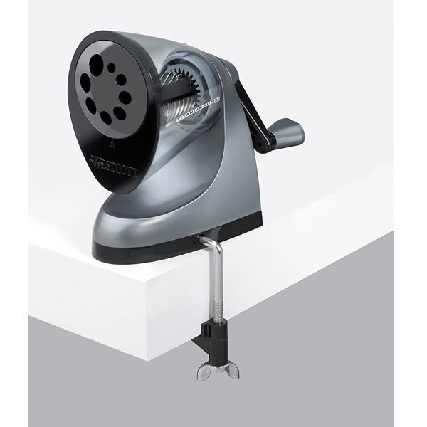 Στερεώστε την στο γραφείο σας και ξύστε τα μολύβια σας και τις ξυλομπογιές σας γυρίζοντας την μανιβέλα στο πίσω μέρος της. Το δοχείο συλλέγει όλα τα ρινίσματα μέχρι να έρθει η ώρα να το αδειάσει. Η βαριά κατασκευή εξασφαλίζει μακροχρόνια απόδοση.