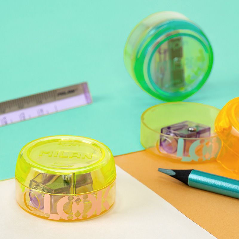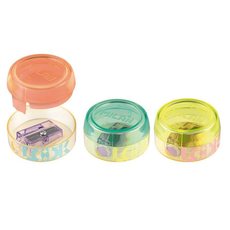 Ξύστρα Milan μονή χρωματιστή. Διατίθενται σε τρία χρώματα.