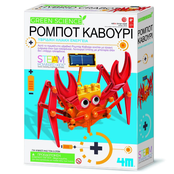 Αυτό το πρωτότυπο υβριδικό Ρομπόρ Καβούρι κινείται με ηλιακή ενέργεια όταν έχει ηλιοφάνεια. Λειτουργεί όμως και με μπαταρία. Θα σε εντυπωσιάσει με τις ρυθμικές κινήσεις του! Διάβασε τα ψυχαγωγικά στοιχεία που θα βρεις στη συσκευασία και μάθε ενδιαφέρουσες πληροφορίες για το Καβούρι Ρομπότ και πολλά άλλα.