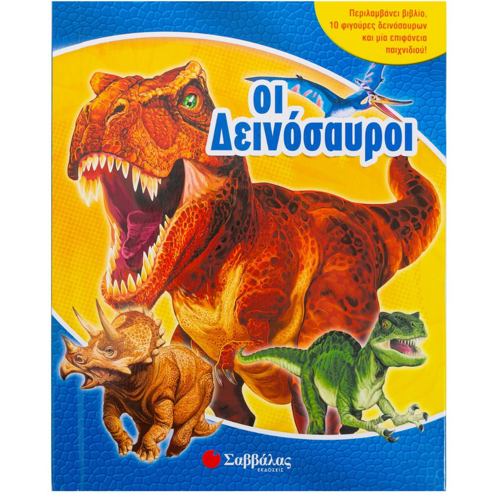 Περιλαμβάνει βιβλίο, 10 φιγούρες δεινόσαυρων και μία επιφάνεια παιχνιδιού