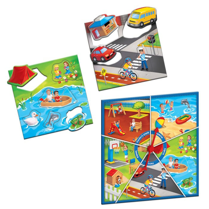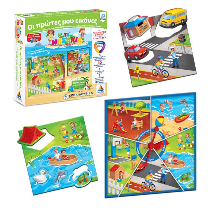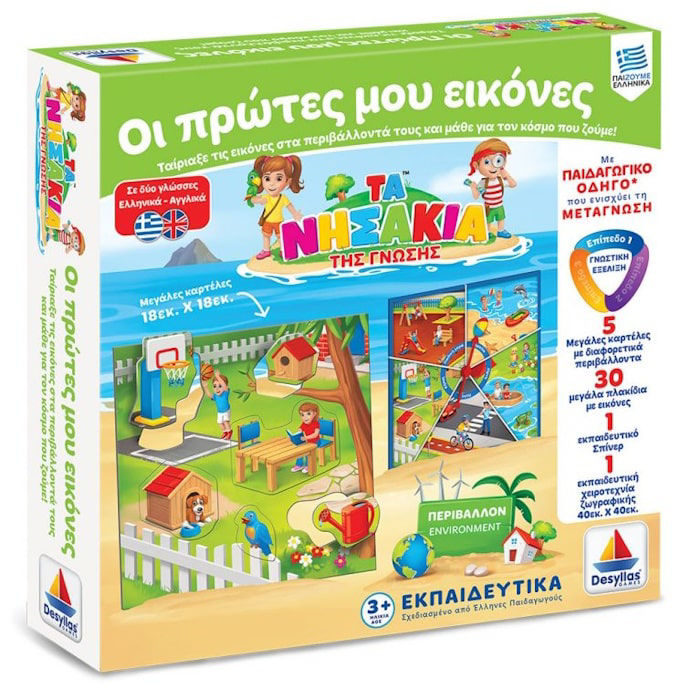 - 30 μεγάλα πλακίδια με εικόνες, στα ελληνικά και αγγλικά.