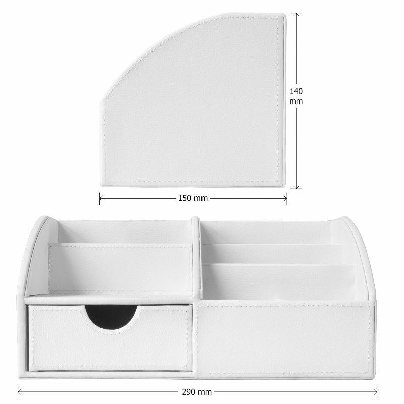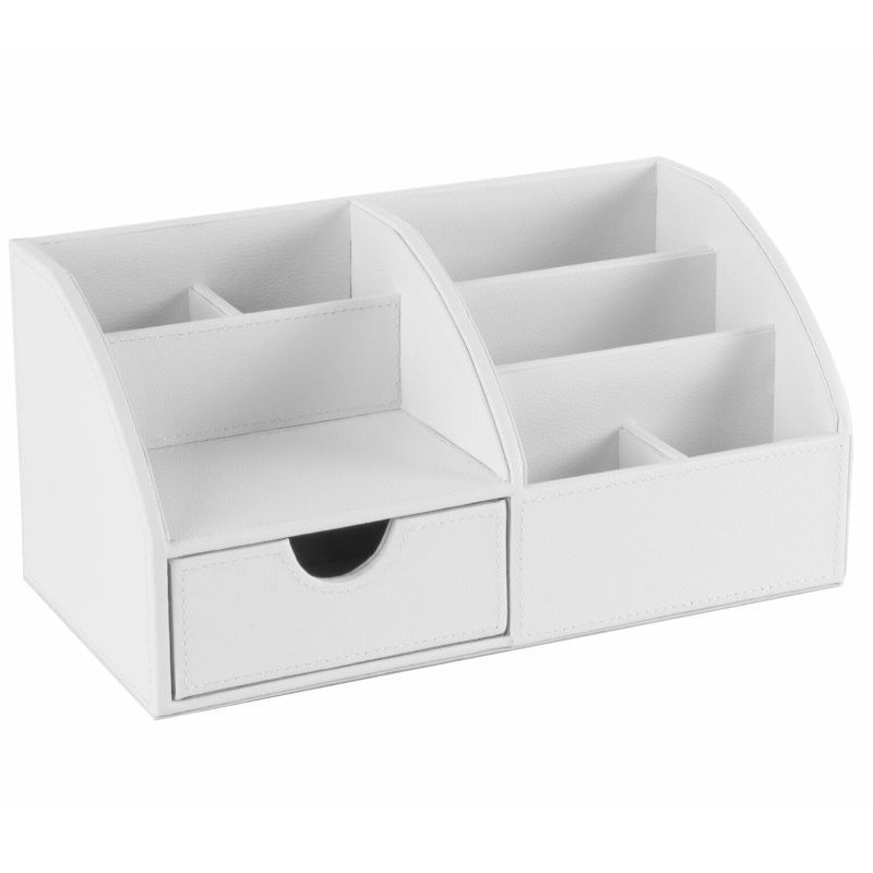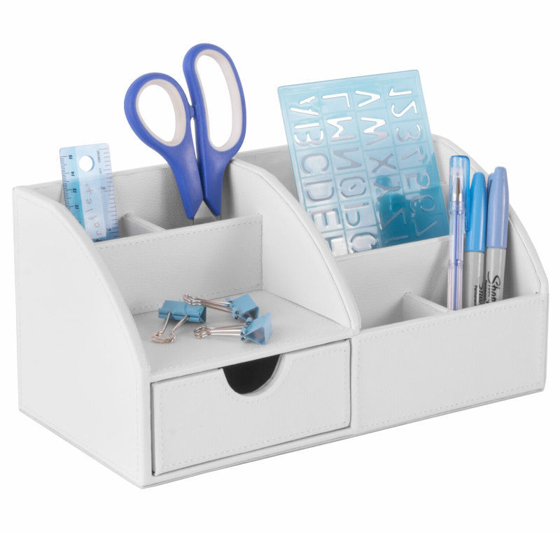 Αποθηκεύστε αποτελεσματικά τα αντικείμενά σας με αυτόν τον οργανωτή και δώστε στο γραφείο σας μια μοντέρνα, πολυτελή εμφάνιση! Το Blush συνθετικό δέρμα, και το εσωτερικό φινίρισμα από σουέτ τον καθιστά μοναδικό!Είναι η ιδανική επιλογή για την αποθήκευση των προϊόντων πρώτης ανάγκης του γραφείου σας, με θήκες για στυλό και μολύβια, ένα μίνι ράφι για ένα σημειωματάριο και ένα συρτάρι για τη διατήρηση μικρών αντικειμένων όπως συνδετήρες και καρφίτσες. Μπορείτε επίσης να αποθηκεύσετε μικρά γράμματα, σημειώσεις και πολλά άλλα!