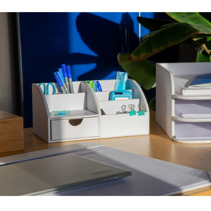 Ο λευκός οργανωτής γραφείου Osco συνδυάζει την αισθητική με τη λειτουργικότητα, δίνοντας ένα μοντέρνο και καθαρό ύφος στον χώρο σας. Ιδανικός για όσους θέλουν ένα οργανωμένο και κομψό γραφείο.