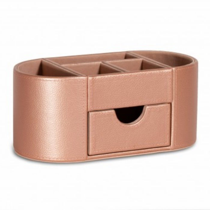 Αποθηκεύστε αποτελεσματικά τα αντικείμενά σας με αυτόν τον οργανωτή και δώστε στο γραφείο σας μια μοντέρνα, πολυτελή εμφάνιση! Το Blush συνθετικό δέρμα, και το εσωτερικό φινίρισμα από σουέτ τον καθιστά μοναδικό!Είναι η ιδανική επιλογή για την αποθήκευση των προϊόντων πρώτης ανάγκης του γραφείου σας, με θήκες για στυλό και μολύβια, ένα μίνι ράφι για ένα σημειωματάριο και ένα συρτάρι για τη διατήρηση μικρών αντικειμένων όπως συνδετήρες και καρφίτσες. Μπορείτε επίσης να αποθηκεύσετε μικρά γράμματα, σημειώσεις και πολλά άλλα!