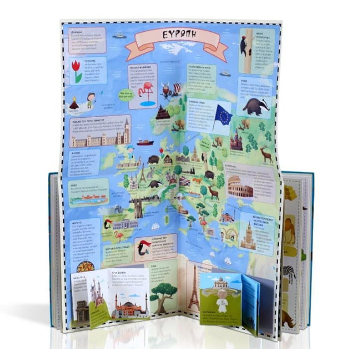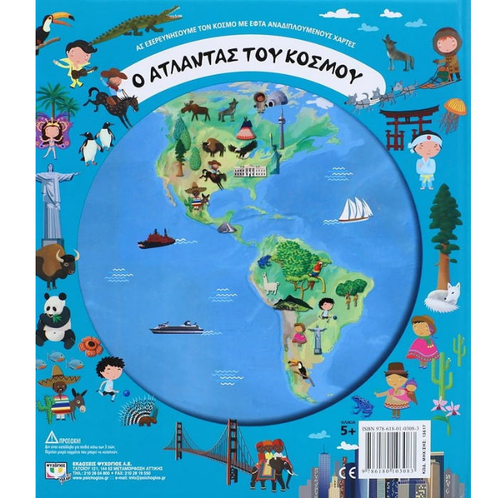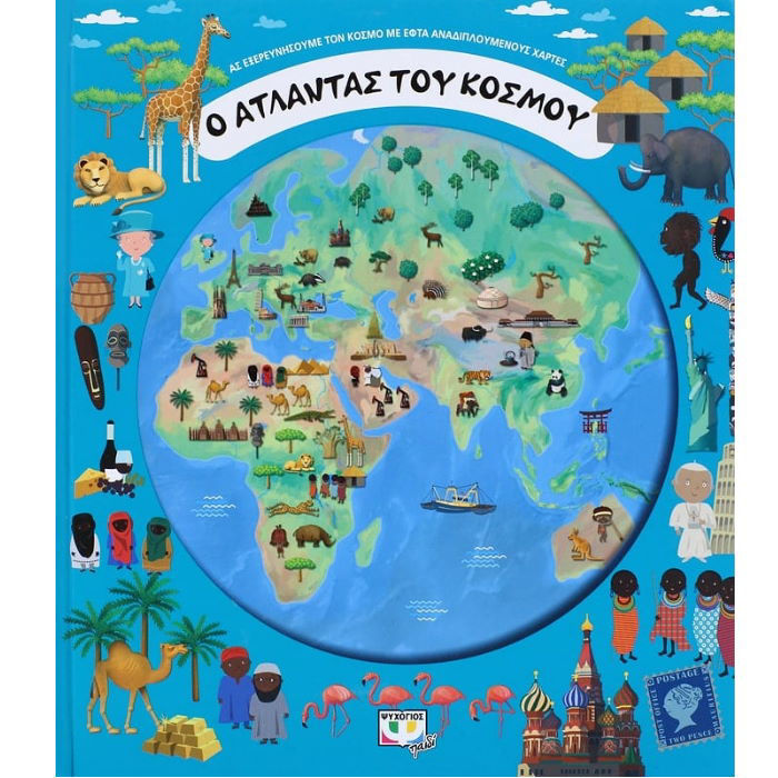 Σπουδαίοι πολιτισμοί, ανυπέρβλητα μνημεία, εντυπωσιακά φυτά και ζώα, υπέροχα φυσικά τοπία ξεπροβάλλουν μέσα από τον Άτλαντα του κόσμου, βοηθώντας μέσα από αναδιπλούμενους χάρτες να ανακαλύψεις πράγματα θαυμαστά και να γνωρίσεις τον κόσμο με τρόπο ψυχαγωγικό!