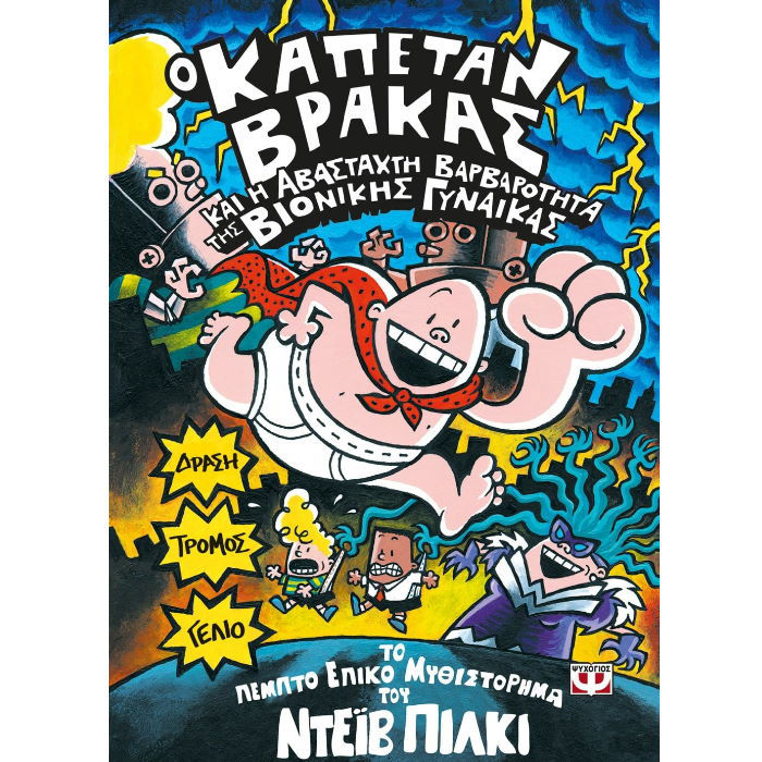 Ο Τζορτζ και ο Χάρολντ αυτή τη φορά ξεπέρασαν τον εαυτό τους. Δημιούργησαν ένα ΤΕΡΑΣ! Είναι ταχύτερη, εξυπνότερη και πιο διαβολική από οτιδήποτε έχει αντικρίσει η ανθρωπότητα ως τώρα. Είναι η Βιονική Γυναίκα! Με τη βοήθεια των γιγαντιαίων ρομπότ της και της φρικαλέας υπερφυσικής κυψέλης των μαλλιών της, η Βιονική Γυναίκα έχει βαλθεί να κατακήσει το σύμπαν, και όποιος τολμήσει να της αντισταθεί, θα τον πιάσει γερά από το λάστιχο του βρακιού του και θα τον κρεμάσει ψηλά! Το ίδιο ισχύει και για τον Καπετάν Βράκα, γιατί η Βιονική Γυναίκα είναι ορκισμένη εχθρός του! Θα κατορθώσει η Βιονική Γυναίκα να γράψει τους τίτλους τέλους για τους ήρωές μας; Διαβάστε το βιβλίο για να το ανακαλύψετε. Στο μεσοδιάστημα… καλύψτε τα νώτα σας!