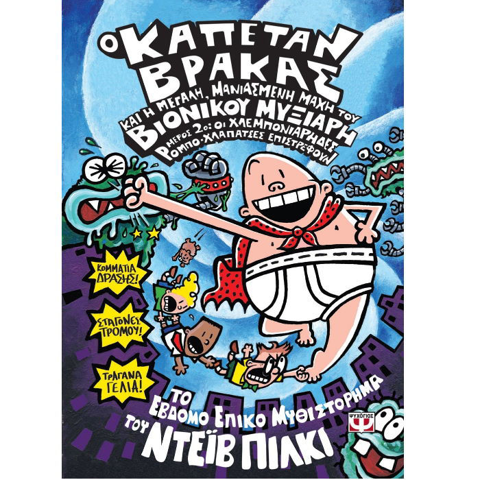 Πάνω που νόμιζαν ότι είχαν γλιτώσει, άντε πάλι τα ίδια! Ο Βιονικός Μυξιάρης ηττήθηκε, όχι όμως και οι Χλεμπονιάρηδες Ρομπο-Χλαπάτσες. Ακολουθήστε τον Τζορτζ, τον Χάρολντ, τον κύριο Κρουπ, τον Μέλβιν Σνίντλι και τον Σούλου, το βιονικό χάμστερ, σε μια περιπέτεια από τα βάθη του Διαστήματος ως το μυστηριώδες και αχαρτογράφητο προχθές! Θα συντρίψετε τέρατα, θα παλέψετε με ρομπότ, θα ταξιδέψετε στον χρόνο, θα αλλάξετε μυαλά… θα περάσετε καλά τέλος πάντων!