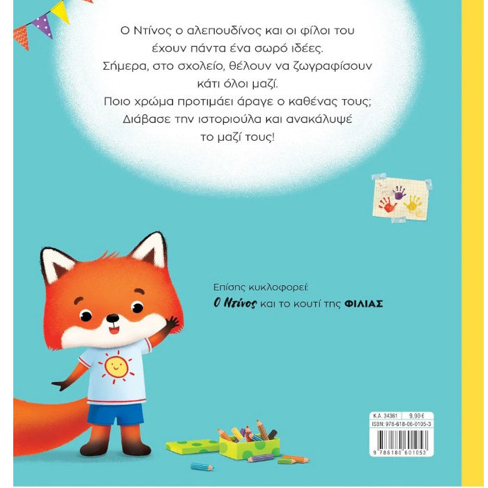 Ο Ντίνος ο αλεπουδίνος και οι φίλοι του έχουν πάντα ένα σωρό ιδέες. Σήμερα, στο σχολείο, θέλουν να ζωγραφίσουν κάτι όλοι μαζί. Ποιο χρώμα προτιμάει άραγε ο καθένας τους; Διάβασε την ιστορία και ανακάλυψέ το μαζί τους.