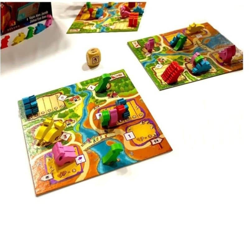 - Περιεχόμενο: 5 Ταμπλό, 60 Ξύλινοι Δεινόσαυροι, 1 Ζάρι, 1 Σακούλι