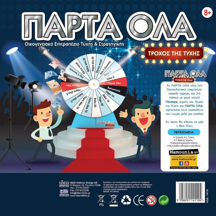 Οικογενειακό επιτραπέζιο παιχνίδι Τύχης και Στρατηγικής! Ήρθε η σειρά σου! Γίνε η «μάνα», υπολόγισε τα χρήματά σου και τα χρήματα των αντιπάλων σου... Σκέψου στρατηγικά, πόνταρε και πάρε βαθιά ανάσα!