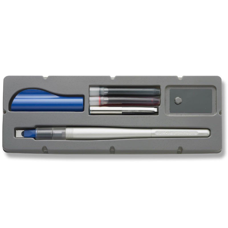 Μια σημαντική ανακάλυψη στο σχεδιασμό των πενών καλλιγραφίας!Η πένα Parallel διαθέτει μια μύτη που αποτελείται από δύο παράλληλες πλάκες, χάρη στην οποία επιτυγχάνεται μια πιο όμορφη και πιο έντονη γραφή. Μπορείτε να δημιουργίσετε εύκολα παχιές και λεπτές γραμμές, διαβαθμισμένες χρωματιστές γραμμές και να αναμίξετε χρώματα. Αυτό το σετ περιλαμβάνει την πένα, δύο αμπούλες μελανιού (μαύρο - κόκκινο), ένα καθαριστικό πανάκι για την μύτη, μία αντλία για τον καθαρισμό της πένας και οδηγίες. Δέχεται ανταλλακτικές αμπούλες Parallel διαφόρων χρωμάτων .