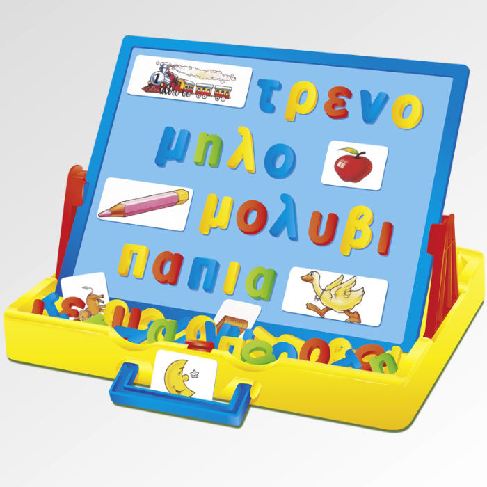 Με τον πίνακα δύο όψεων το παιδί μπορεί να σχηματίσει λέξεις με τα μαγνητικά γράμματα, να ζωγραφίσει με τις κιμωλίες, να γράψει με τον μαρκαδόρο ή να σβήσει με το σφουγγαράκι. Και όλα αυτά μαζί σε ένα βαλιτσάκι για εύκολη μεταφορά!