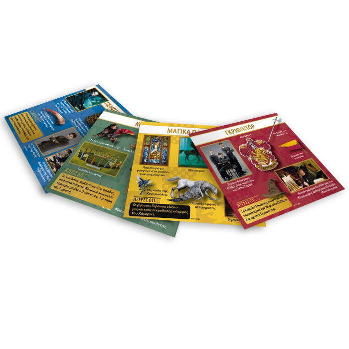 Στις κάρτες απεικονίζονται σκηνές από τις οκτώ ταινίες του Χάρι Πότερ με τους αγαπημένους ήρωες. Επίσης, απεικονίζονται σημαντικές στιγμές και αναγράφονται οι διάλογοί τους. Επιπλέον, υπάρχουν ξεχωριστές κάρτες που περιλαμβάνουν τα πάντα από το Γκρίφιντορ μέχρι το Υπουργείο Μαγείας. Αυτό το παιχνίδι θα ξυπνήσει τον κρυμμένο μάγο μέσα σου!