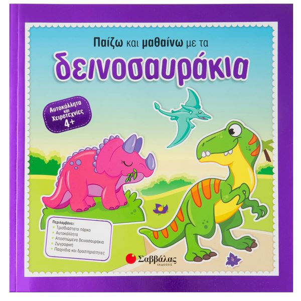 Τα παιδιά διασκεδάζουν με τα πρωτότυπα παιχνίδια και τις δραστηριότητες αυτού του διαδραστικού βιβλίου. Ταυτόχρονα εξασκούνται στη γραφή και στην ανάγνωση , εξοικειώνονται με τους αριθμούς , τα σχήματα και τα χρώματα , μαθαίνουν για τους δεινόσαυρους , εξασκούν την παρατηρητικότητά τους και καλλιεργούν τη δημιουργικότητα και τη φαντασία τους.