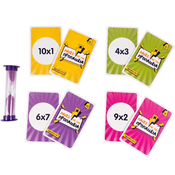 - 100 κάρτες με την προπαίδεια (διπλής όψης με διαφορετικό χρώμα για την προπαιδεία του κάθε αριθμού)