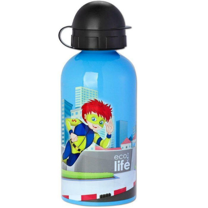 Mεταλλικό ανοξείδωτο μπουκάλι Super Boy. Ο σούπερ-ήρωας της Ecolife είναι έτοιμος να ταξιδέψει μαζί με το δικό σας 'super boy' σε μέρη γεμάτα παιχνίδι & ανεμελιά!