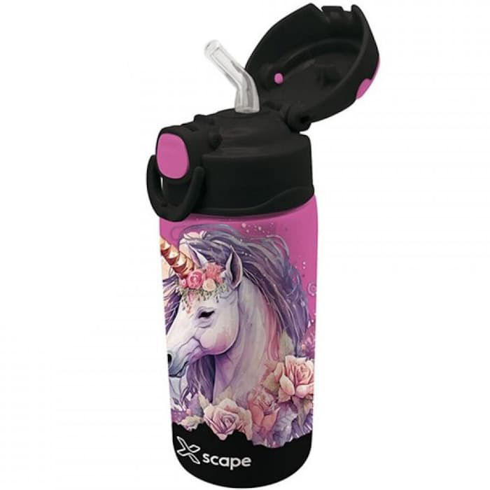 Παγούρι ανοξείδωτο με καλαμάκι και λαβή, χωρητικότητας 500ml.