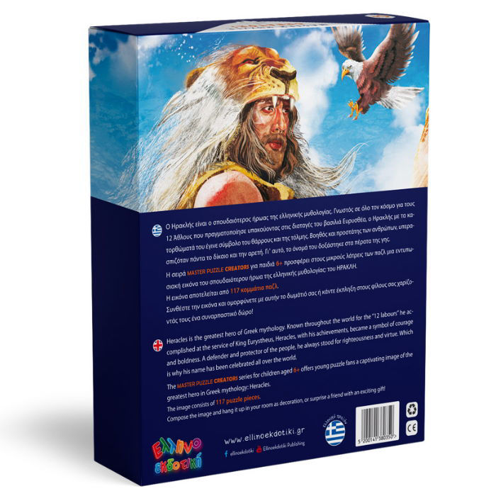 Η σειρά MASTER PUZZLE CREATORS για παιδιά 6+ προσφέρει στους μικρούς λάτρεις των παζλ μια εντυπωσιακή εικόνα του σπουδαιότερου ήρωα της ελληνικής μυθολογίας: του ΗΡΑΚΛΗ. Η εικόνα αποτελείται από 117 κομμάτια παζλ.