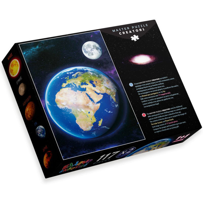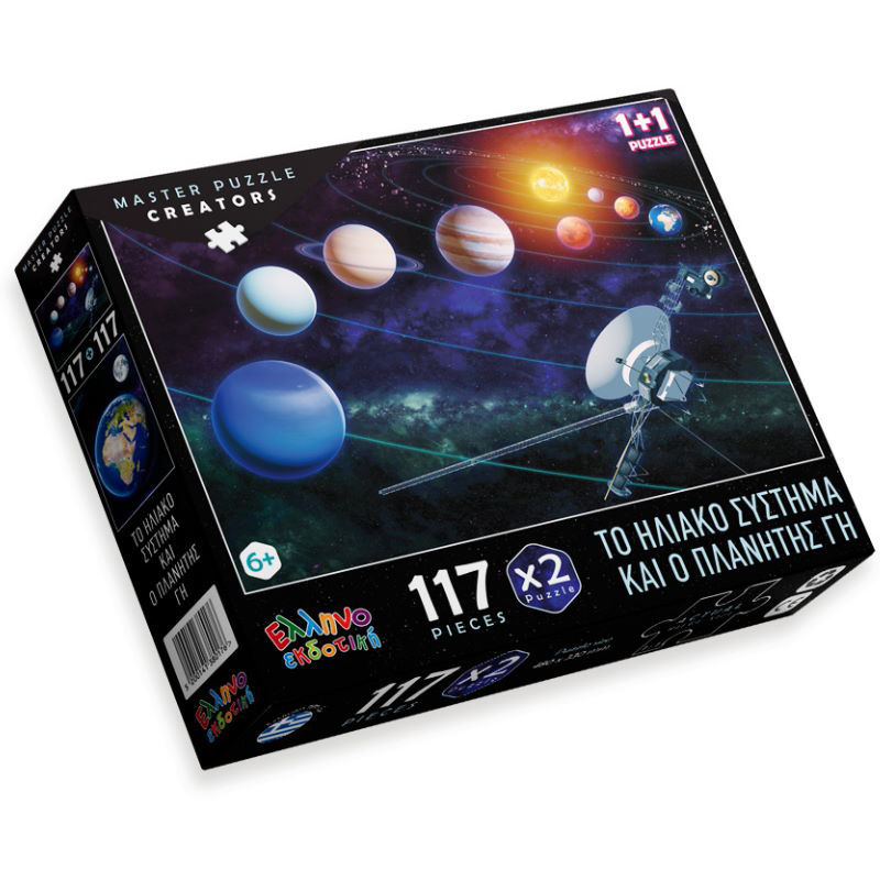 Με το περιεχόμενο του κουτιού μπορείτε να συνθέσετε δύο εικόνες: του Ηλιακού μας συστήματος και της Γης. Κάθε εικόνα αποτελείται από 117 κομμάτια παζλ.