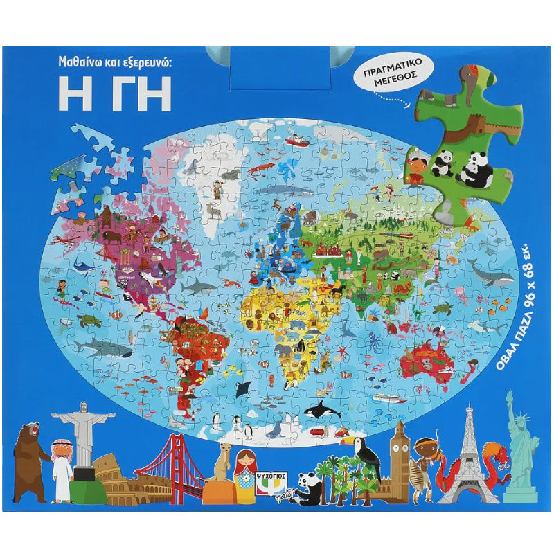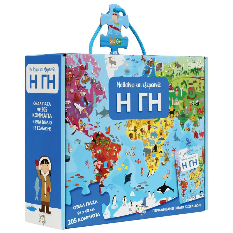 Ήρθε η ώρα να κάνεις τον γύρο του κόσμου και να μάθεις πολλές ενδιαφέρουσες πληροφορίες για τον όμορφο πλανήτη μας. Μάθε τι βάθος έχουν οι ωκεανοί και δες από κοντά τα πιο μεγάλα και άγρια ζώα του κόσμου. Ύστερα, έλεγξε όλα όσα έμαθες φτιάχνοντας ένα απίθανο παζλ 205 κομματιών!