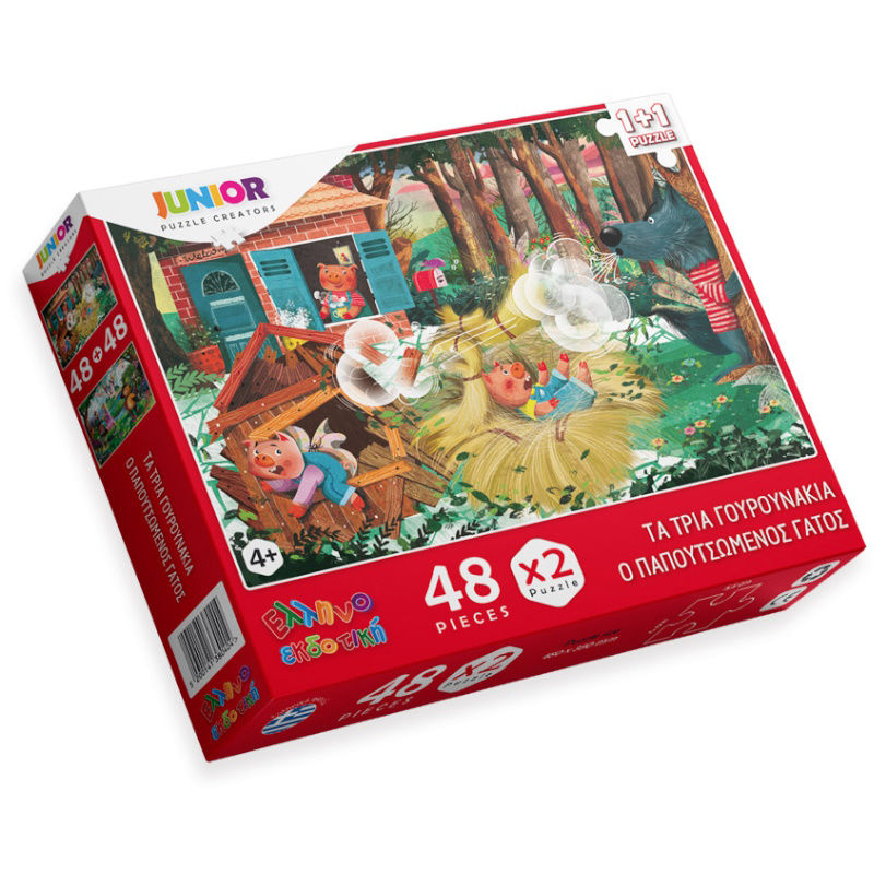 Παζλ 2x48τεμ. τρία γουρουνάκια - παπουτσωμένος γάτος Ελληνοεκδοτική